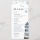 Este cardápio apresenta desenhos náuticos em aquarela, a tipografia elegante complementa o design perfeitamente.