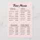 Descubra a elegância sofisticada do nosso menu plano de bebidas Pink Bar. Perfeito para loja de moda, está disponível no Zazzle. Eleve sua experiência gastronômica hoje mesmo!