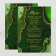 Exiba suas seleções de refeições com estilo com este elegante cardápio de casamento com um design de mármore de ágata verde acentuado com detalhes em dourado. O fundo inspirado em geodos cria uma aparência sofisticada, perfeita para casamentos de outono e inverno, celebrações formais ou eventos noturnos. Projetado para coordenar com o conjunto de papelaria do seu casamento, este cardápio é ideal para apresentar os pratos claramente, ao mesmo tempo em que adiciona um toque luxuoso à sua decoração de mesa. A tipografia limpa garante legibilidade e complementa a textura da ágata. Personalize facilmente todo o texto para adequar ao seu cardápio e detalhes do evento, tornando-o uma escolha bonita não apenas para casamentos, mas também para festas de noivado, aniversários e outras ocasiões formais.