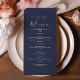 Eleve sua recepção com nosso cardápio de casamento azul marinho minimalista. Com seu design elegante e sutil acento de coração com corda dourada, ele adiciona um toque de sofisticação à sua mesa. A caligrafia moderna completa o visual, oferecendo uma estética contemporânea e atemporal que prepara o cenário para uma experiência gastronômica inesquecível no seu dia especial.