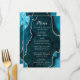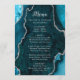 Exiba suas opções de refeição com estilo com este elegante cardápio de casamento com um design de mármore de ágata azul-teal acentuado com detalhes prateados. O fundo inspirado em geodos cria uma aparência sofisticada, perfeita para casamentos de outono e inverno, celebrações formais ou eventos noturnos. Projetado para coordenar com o conjunto de papelaria do seu casamento, este cardápio é ideal para apresentar os pratos claramente, ao mesmo tempo em que adiciona um toque luxuoso à sua decoração de mesa. A tipografia limpa garante legibilidade e complementa a textura da ágata. Personalize facilmente todo o texto para adequar às informações do seu cardápio e evento, tornando-o uma escolha bonita não apenas para casamentos, mas também para festas de noivado, aniversários e outras ocasiões formais.