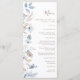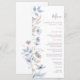 Entre num lindo celebração de amor e natureza com o nosso Menu de Casamento Boho Rústico Aquarela. Este menu deslumbrante e único infunde um toque de boho chic com belas flores silvestres pintadas à mão em aquarela em tons suaves de azuis pálidos e empoeirados complementados por tons terrosos. O nosso modelo fácil de personalizar permite que você infunda sua voz pessoal tornando-o verdadeiramente seu. Este lindo menu é perfeito para casamentos românticos e elegantes em qualquer época do ano! (Texto bege escuro.)