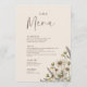 Menu Cardápio de Casamento Botânico Bege Boho