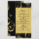 Cartão de Cardápio de Casamento Chic Floral Preto e Dourado Falso em Espiral. Itens correspondentes disponíveis.