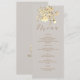 Adicione um toque de elegância rústica ao seu reception com este cartão de menu de casamento boho de outono. Delicadas flores silvestres douradas florescem em um fundo neutro suave, criando uma atmosfera quente e romântica que complementa qualquer cenário de mesa de outono. Exiba seu menu com estilo atemporal e um toque de charme vintage.