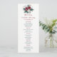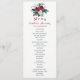 Burgundy vermelha e peões brancos florantes com ramos de abeto verde-pinheiro sazonal, bagas vermelhas e fazer de folhagem MODELO de um cartão de cardápio elegante sobre um simples fundo branco na frente e verde-pinheiro com flores na parte de trás. Observe que a cor de fundo na frente e no verso é editável. Para alterar a cor e também as fontes e a cor do texto, selecione a opção "personalizar mais". O convite é ideal para casamentos florais elegantes de inverno/Natal ou outras festas.