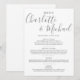 Cartão de menu de casamento elegante em cinza e branco com nomes em estilo exclusivo, este menu moderno pode ser personalizado com suas informações em letras cinzas elegantes. Criado por Thisisnotme©