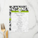 Convites de Casamento com Padrões Florais em Preto e Branco de Damasco Vintage Modernos com Corte em Maçã Verde. Perfeito para temas de casamento Rococó Barroco, Renascimento Medieval, Art Déco Art Nouveau, Gatsby dos Anos 20, Casamentos Vitorianos ou temas de casamento em Fazenda Elegante.