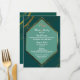 Elegante, sofisticado e moderno, com impressão falsa de mármore dourado e contorno de diamante geométrico em recorte de diamante em menta e verde floresta, cartões de menu para recepção de casamento. Este design clássico e sofisticado é perfeito para a recepção de casamento elegante, sofisticada e moderna. Personalize com seu próprio cardápio na frente, junto com seus nomes e datas. Em seguida, personalize o verso com a inicial do seu monograma. Todo o design de impressão de foto.