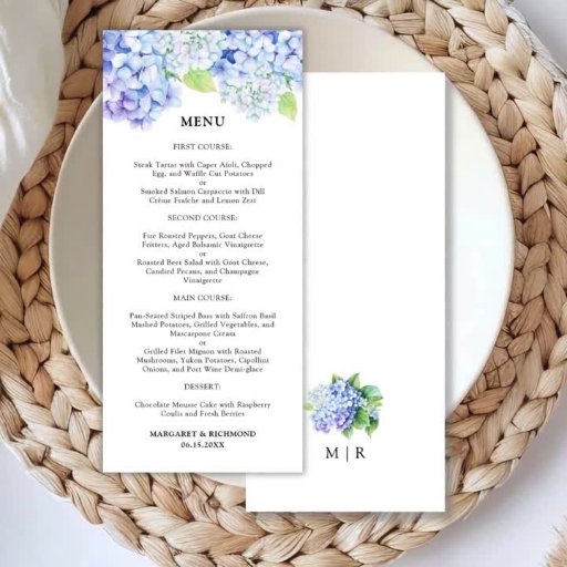 Adicione um toque de elegância ao seu casamento com nosso 'Cardápio de Casamento Floral Azul Empoeirado de Hortênsia'. Complementando perfeitamente nossa coleção, este cardápio promete impressionar seus convidados. Compre agora e prepare o cenário para uma experiência gastronômica inesquecível!