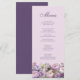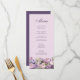 Eleve a sua recepção de casamento com o nosso encantador Menu de Casamento Floral Boho Lilás. Este cartão de menu requintado apresenta um design charmoso adornado com peônias roxas claras, criando uma atmosfera caprichosa e romântica para a sua celebração. O motivo floral inspirado no boêmio adiciona um toque elegante às mesas da sua recepção, enquanto o texto personalizável permite que você apresente suas deliciosas opções de menu com estilo. Cada menu é impresso em papel cartão de alta qualidade, garantindo uma apresentação luxuosa que impressionará seus convidados. Defina o tom para uma experiência gastronômica inesquecível com o nosso Menu de Casamento Floral Boho Lilás.