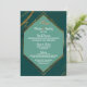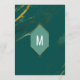 Elegante, chique e moderno, mármore dourado impresso falso e contorno de diamante geométrico em recorte de diamante verde menta e floresta, cartões de menu de recepção de casamento. Este design clássico e sofisticado é perfeito para a recepção de casamento elegante, sofisticada e trendy. Personalize com o seu próprio cardápio na frente, juntamente com seus nomes e datas. Em seguida, personalize a parte de trás com a inicial do seu monograma. Todo o design de impressão de foto.