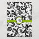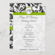 Convites de Casamento com Padrões de Damasco Floral Preto e Branco Modernos e Vintage com Corte Maçã Verde. Perfeito para temas de casamento Rococó Barroco, Renascença Medieval, Art Déco Art Nouveau, Gatsby dos Anos 20, Casamentos Vitorianos ou temas de Casamento de Fazenda Elegante.