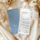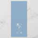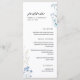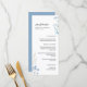 Cardápio de casamento com monograma de flores silvestres azuis.
