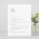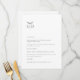 Este é um cardápio de casamento branco e preto moderno, que irá adicionar um toque de elegância ao décor da sua festa de casamento. Todo o texto é editável, basta clicar em 'Personalizar este modelo'. Itens correspondentes, como cartões de lugar, números de mesa e sinais de casamento também estão disponíveis.