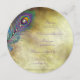Belo cardápio de casamento pavão em roxo lavanda e azul turquesa. Este cardápio de casamento pavão azul turquesa é facilmente personalizado para o seu evento com a escolha do estilo de fonte, cor e texto na frente e no verso. Este é um design gráfico impresso sem pedras preciosas reais, joias, etc. Este design de cardápio redondo de 5,25 polegadas fica elegante no prato!