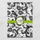 Convites de Casamento com Padrões Florais Pretos e Brancos de Damasco Vintage Modernos com Corte Verde Maçã. Perfeito para temas de casamento Rococó Barroco, Renascimento Medieval, Art Déco Art Nouveau, Gatsby dos Anos 20, Casamentos Vitorianos ou Temas de Casamento de Fazenda Elegante.