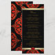 Cardápio de casamento vermelho, preto e dourado com coração de cetim vermelho rico e fundo de damasco preto e dourado. Este cardápio de casamento elegante vermelho, preto e dourado é facilmente personalizado com os detalhes do seu evento. Você pode remover o coração ou movê-lo para qualquer local, bem como alterar o tamanho.