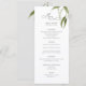 Cardápio de jantar com galhos de Eucalipto em aquarela rústica e caligrafia luxuosa. Copyright © 2022, Lemon Buttercup™. Todos os direitos reservados.
