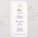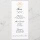 Este elegante cardápio de jantar de casamento foi inspirado nos convites do Casamento Real Britânico do Príncipe Harry com Meghan Markle em maio de 2018 e no convite do Príncipe William e Kate em abril de 2011. O design tem um desenho dourado semelhante no topo. A escrita preta simples e elegante é atemporal. Adicione uma borda dourada com um marcador de artesanato dourado para combinar com os convites oficiais!