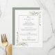 Cartão de menu de casamento com folhagem botânica personalizado com suas informações em tipografia sofisticada. Projetado por Thisisnotme©
