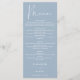 Este cardápio de casamento azul empoeirado elegante pode ser personalizado com suas informações em tipografia sofisticada com suas iniciais monogramáticas no verso. Projetado por Thisisnotme©