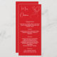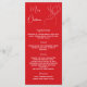 cartão de menu de jantar de festa de Natal. Personalize e adicione um nome/evento, data e o cardápio. Fundo vermelho, texto branco. Decorado com uma rena moderna abstrata. Texto: Feliz Natal