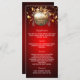 cartão de menu de jantar de festa de Natal. Personalize e adicione um nome/evento, data e o cardápio. Fundo vermelho, texto branco. Decorado com uma bolha dourada. Texto: Feliz Natal