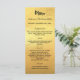 Cartão de menu de jantar de Natal. Personalize e adicione um nome/evento, data e o cardápio. Fundo com aparência de ouro falso, texto preto.
