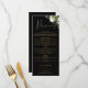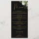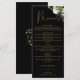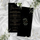 Este elegante cardápio de casamento com flores botânicas pretas e douradas pode ser personalizado com suas informações em tipografia sofisticada com suas iniciais monograma no verso. Projetado por Thisisnotme©