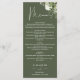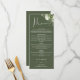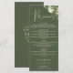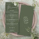Este cardápio de jantar de noiva com estampa floral verde oliva e folhagens botânicas pode ser personalizado com suas informações em tipografia sofisticada e seu monograma no verso. Projetado por Thisisnotme©