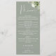 Menu Cardápio de Jantar de Noivado Floral Verde Salvia