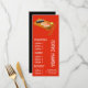 Um modelo de cardápio colorido e fofo para um restaurante japonês moderno ou jantar temático japonês. Este cardápio fofo tem uma ilustração fofa de sushi japonês contra um fundo vermelho brilhante personalizável. O texto pode ser personalizado para atender às suas necessidades.