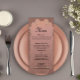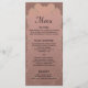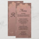 Um cardápio de recepção de casamento vintage e sofisticado em rose gold para combinar com um conjunto completo de casamento contendo mais de 20 brindes de casamento correspondentes, incluindo convite, anúncios, save the dates e mais, que você pode encontrar aqui: https://www.zazzle.com/collections/rose_gold_wedding-119523749737675634 O design apresenta um padrão damasco lindo e luxuoso em rose gold e rosa bege. Todos os detalhes podem ser totalmente personalizados.