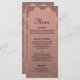 Um cardápio de recepção de casamento vintage e sofisticado em rose gold para combinar com um conjunto completo de casamento contendo mais de 20 brindes de casamento correspondentes, incluindo convite, anúncios, salvar as datas e mais, que você pode encontrar aqui: https://www.zazzle.com/collections/rose_gold_wedding-119523749737675634 O design apresenta um padrão damasco lindo e luxuoso em rose gold e rosa bege. Todos os detalhes podem ser totalmente personalizados.