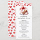 Cardápio do chá de bebê do Dia dos Namorados com doce ursinho em nuvens com balões em forma de coração e fundo de coração. Basta adicionar os detalhes do seu evento a este adorável cardápio de chá de bebê.