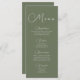 Este cardápio é caracterizado pelo estilo boho, cor verde salvia, com uma mistura de diferentes estilos de fontes, muitas vezes em tamanhos diferentes, para criar uma aparência única e eclética que torna esses cardápios uma estética natural.