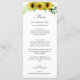 Menu cardápios de girassóis e azul rosado