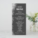 cartões de cardápio elegantes de praia em preto e branco. O estilo do quadro de chanfro é moderno e moderno cardápio de casamento.