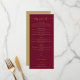 Este elegante menu de casamento em grafia com coração em burgundy e dourado pode ser personalizado com suas informações em tipografia chic. Criado por Thisisnotme©