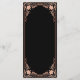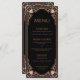 Um menu elegante com ar vintage, recomendado para um casamento com cores de casamento rosa e pretas. O menu tem um quadro cor-de-rosa (faux rosa gold). O título "Menu" e as legendas são escritas em bonés. Todo texto pode ser personalizado e tem uma cor rosa semelhante ao quadro. O fundo é preto. No verso, há o mesmo quadro de colheita. A safra, quadro de ornamentado, baseia-se numa antiga ligação francesa ao cobrir de livro, de Georges Mercier (1885-1939) - Madame de Maupin, por Theophile Gautier, edição de 1911, agora no dominio público.