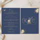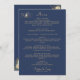 Marinho Azul Dourado Monograma Nome de Casamento Menu Inicial. Celebre seu casamento com estilo e elegância. Fácil de personalizar e fazer o seu. Confira!