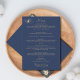 Menu Casamento Azul do Marinho do Monograma Dourado Ele