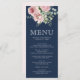 Elegante cardápio de casamento cor-de-rosa com lindas flores.