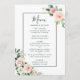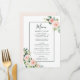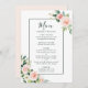 Este menu de casamento apresenta flores pintadas de aquarelas em folhagem rosa-pincel, branca e verde com uma estrutura retangular. Para personalização mais avançada deste design, clique no link "Personalizar mais".