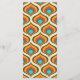 Tema do Boho Chic 70, cartão de menu. Modelo oferece espaço para nomes, data e três títulos de menu com descrições. Parte traseira dos recursos da placa, padrão do estilo da tendência 70 na paleta de cores retrorreflectoras a quente.