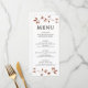 Este simples cartão de menu de casamento outono minimalista tem manchas de delicadas folhas de outono no topo e no fundo, com fundo de marfim. Encontre produtos correspondentes na coleção ou entre em contato comigo através do bate-papo Zazzle para obter produtos adicionais ou outras formas de cores.