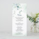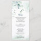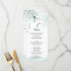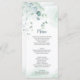 Cardápio de casamento botânico de eucalipto verde-empoeirado e verde-sábio.
