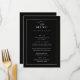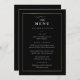 Este Menu de Casamento Elegante Clássico é simples e versátil. Ele apresenta um design branco-chic e preto com um monograma, detalhes de script, simples quadro de ouro e texto editável formal. Clique no botão editar para personalizar este design.