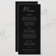 Este cartão de cardápio de casamento apresenta um roteiro cativante de caligrafia contemporânea. O design preto e branco cria uma primeira impressão ousada e inesquecível, enquanto os itens do menu são apresentados elegantemente, assegurando que seus convidados possam antecipar ansiosamente as delícias culinárias de sua recepção de casamento.